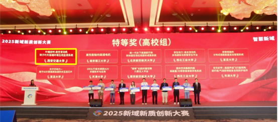 2025年9月21日—22日,2025新域新质创新大赛决赛在青岛举办。遴选自全国的233项优秀成果同台竞技,经过激烈角逐,由西安交通大学航空发动机研究所乔百杰教授领衔的(高端仪器和制造设备类)成果“叶端定时-航空发动机转子叶片极端环境在线监测系统”荣获2025新域新质创新大赛“高校师生组”特等奖。